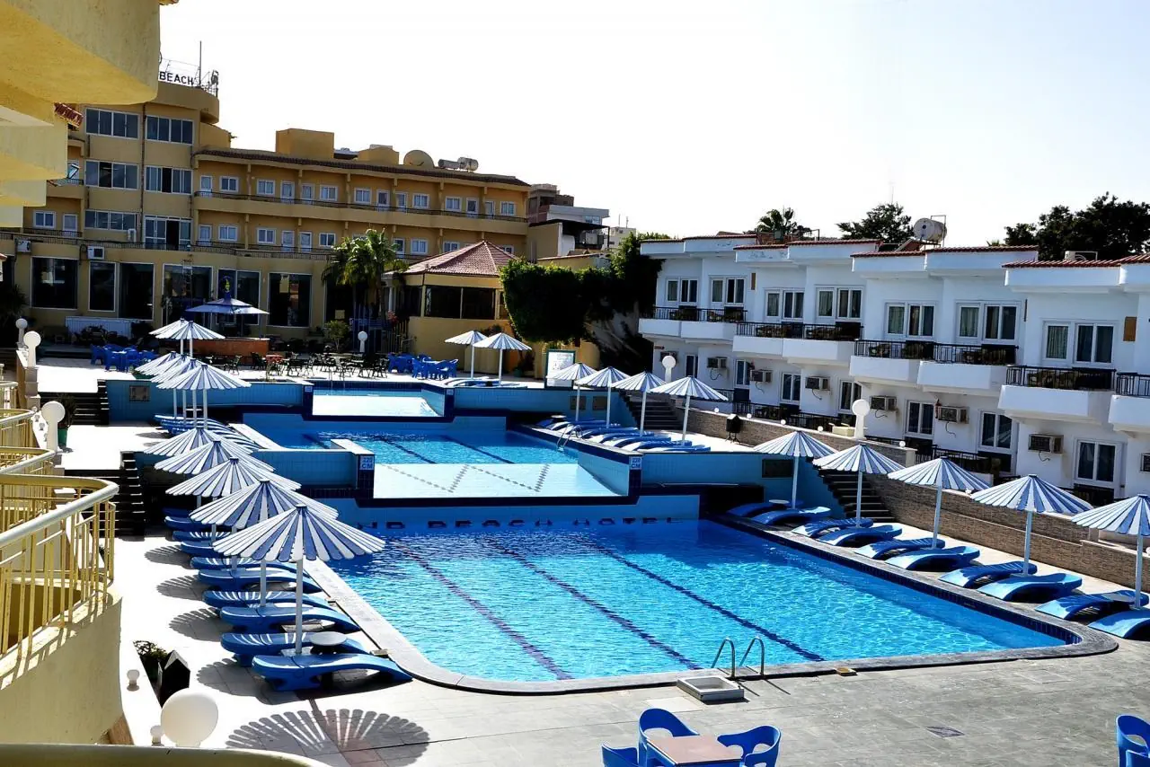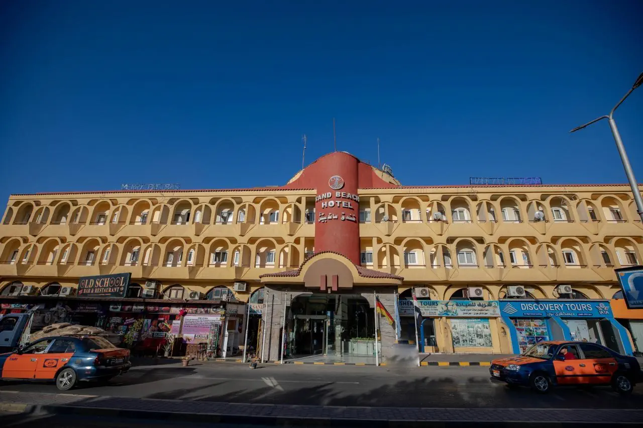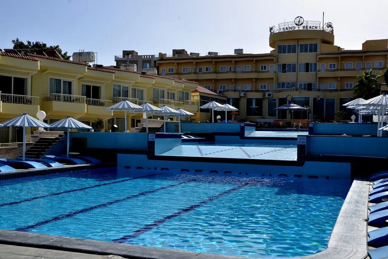 Sand Beach Hotel położony jest nad samym brzegiem Morza Czerwonego, w mieście Hurghada. Dysponuje niewielkim obszarem z prywatną plażą, restauracją, barami i miniklubem dla dzieci. Oferuje łącznie 144 pokoje, z czego część mieści w budynku głównym, a część w bungalowach. Goście mogą korzystać z 3 basenów zewnętrznych, z czego 1 jest przeznaczony dla dzieci. Za opłatą dostępna jest oferta SPA.