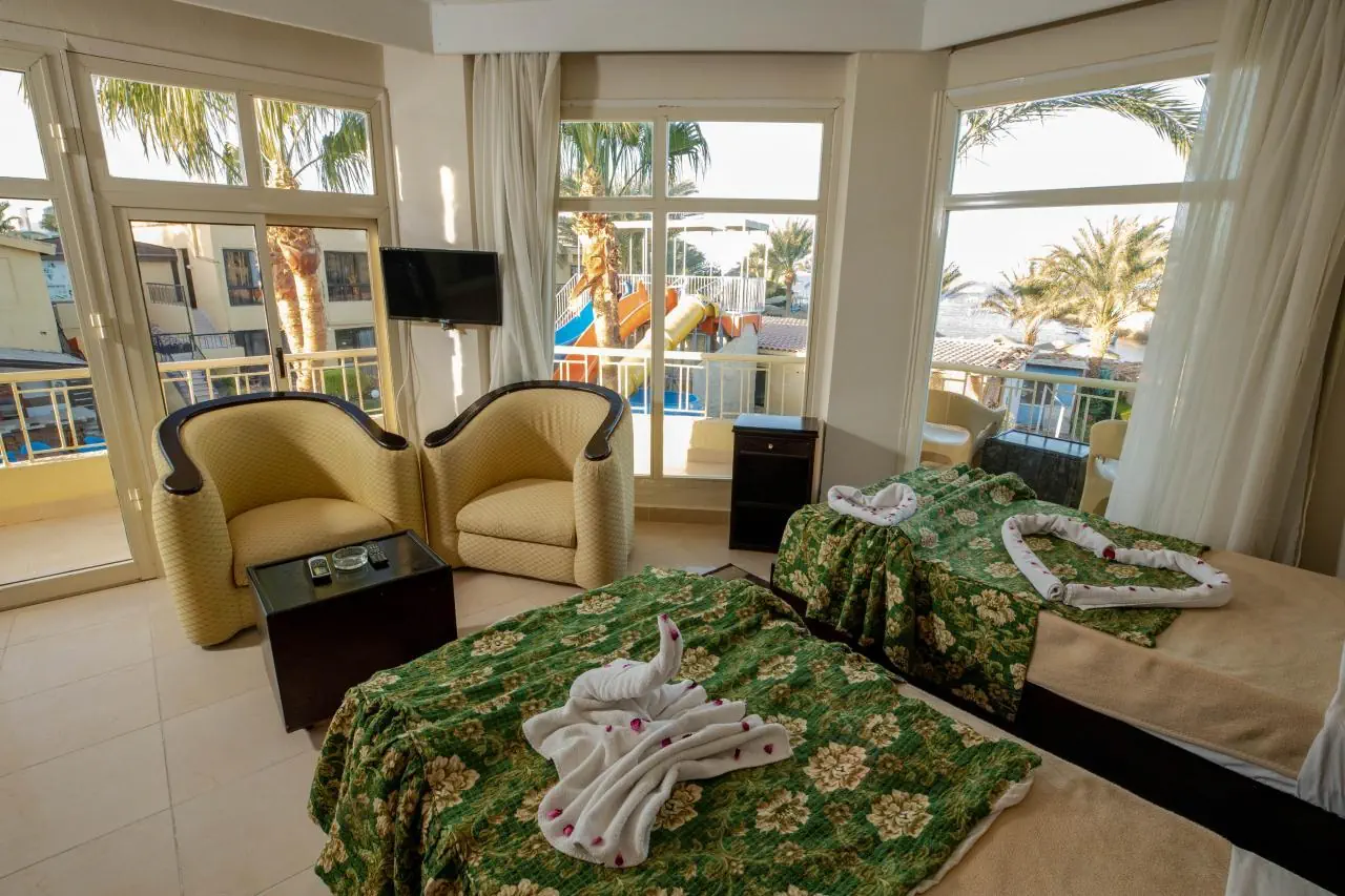 * Standard Room Room: ok. 20 m2, w budynku głównym z widokiem na okolicę lub ogród, 1 łóżko podwójne lub 2 łóżka pojedyncze, dostępne jest tylko jedno dodatkowe łóżko - rozkładane łóżko pojedyncze; minilodówka, TV, telefon, klimatyzacja * Pool View Room: ok. 20 m2, widok na basen, w budynku głównym z widokiem na okolicę lub ogród, 1 łóżko podwójne lub 2 łóżka pojedyncze, dostępne jest tylko jedno dodatkowe łóżko - rozkładane łóżko pojedyncze; minilodówka, TV, telefon, klimatyzacja * Family Room: ok. 40 m2, 2 pomieszczenia oddzielone drzwiami, widok na okolicę, basen lub morze, 1 łóżko podwójne i 2 łóżka pojedyncze, minilodówka, TV, telefon, klimatyzacja Pokoje Double/Triple/Single mają takie samo wyposażenie i łóżka - różnią się jedynie ilością gości/dorosłych w pokoju. Sejf jest dostępny w recepcji za opłatą.